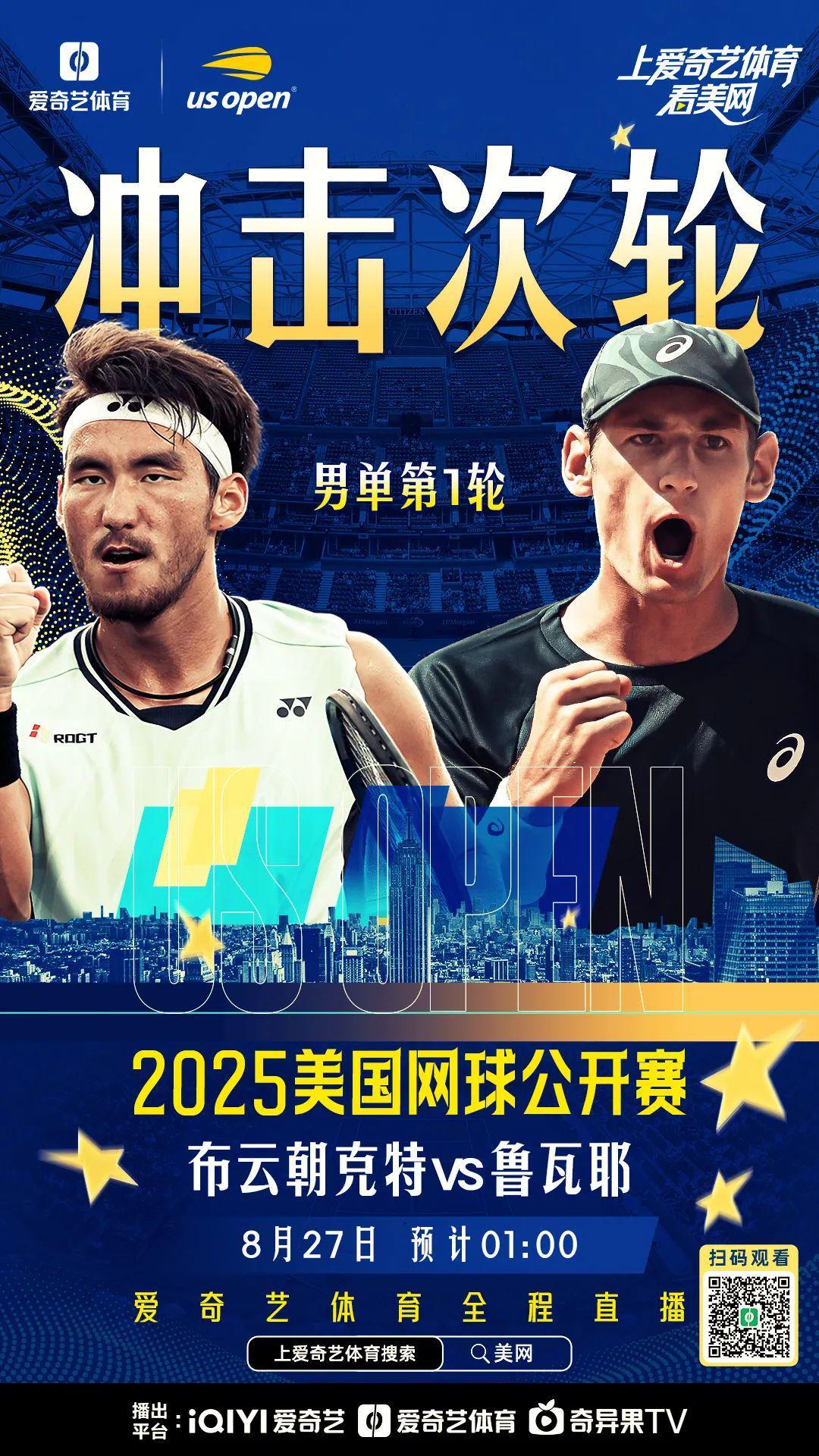 布云朝克特将在凌晨1时出战男单首轮,对阵持外卡出战的法国选手鲁瓦耶,力争大满贯单打正赛首胜。